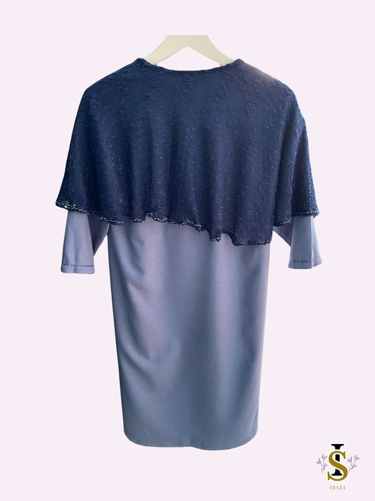 Kinderjurk blauw met lange poncho