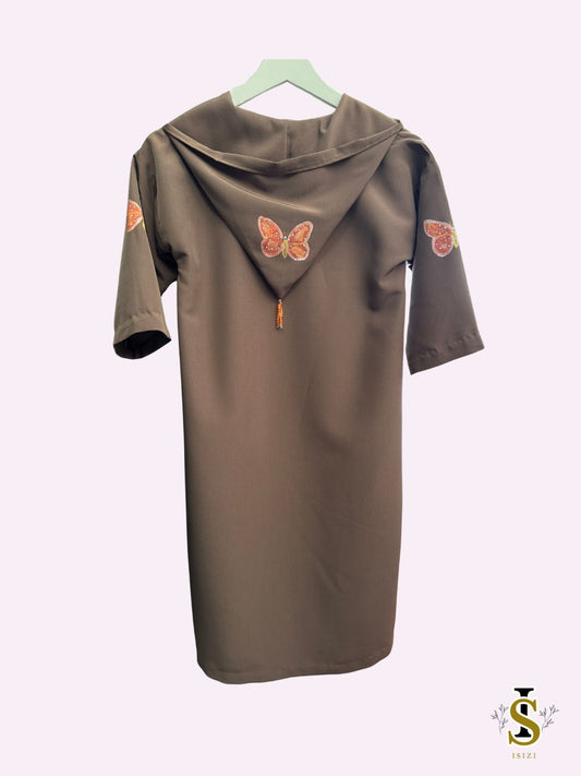Handgeverfde kinder djellaba met vlinders en bloemen