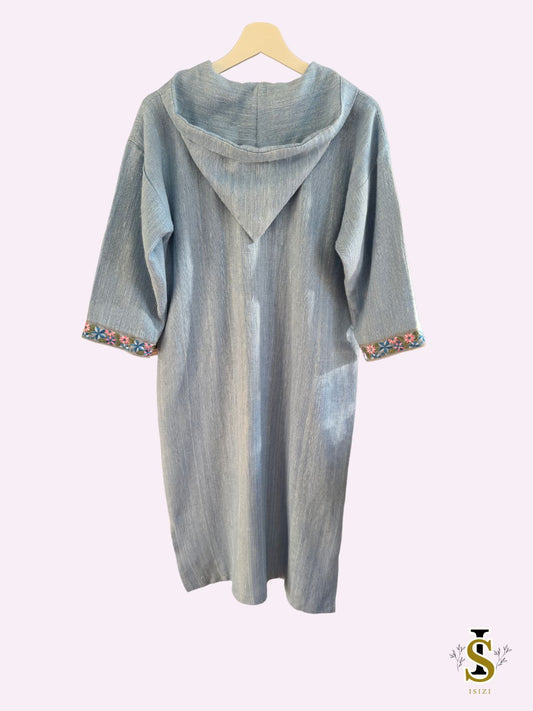 Kinder djelleba 3 jaar lichtblauw linnen stof