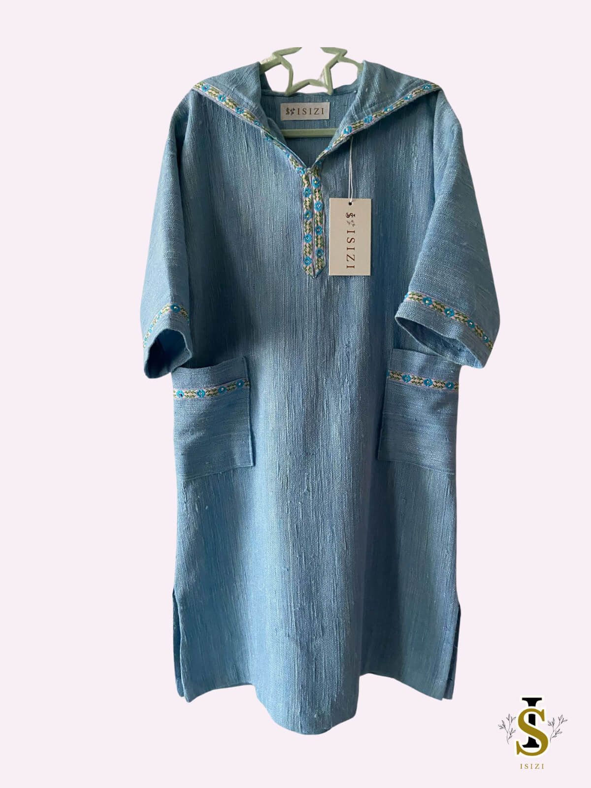 Kinder djelleba 3 jaar lichtblauw linnen stof